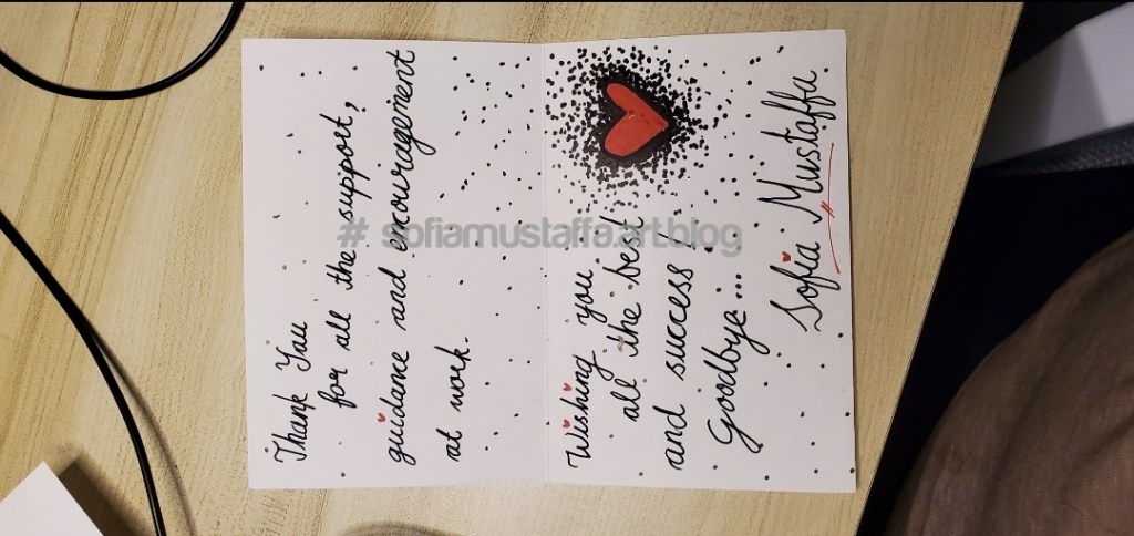 There is one day, I received a mystery food delivery. When I saw on the paper, it’s written small notes said, “Once arrived, please call Sofia”, from Kak Shera. It was so touching that my manager secretly sending me 2 cupcakes for me. Thank you, Kak Shera. I will do always keep in touch with you. Hope one day we can still work together 🥺