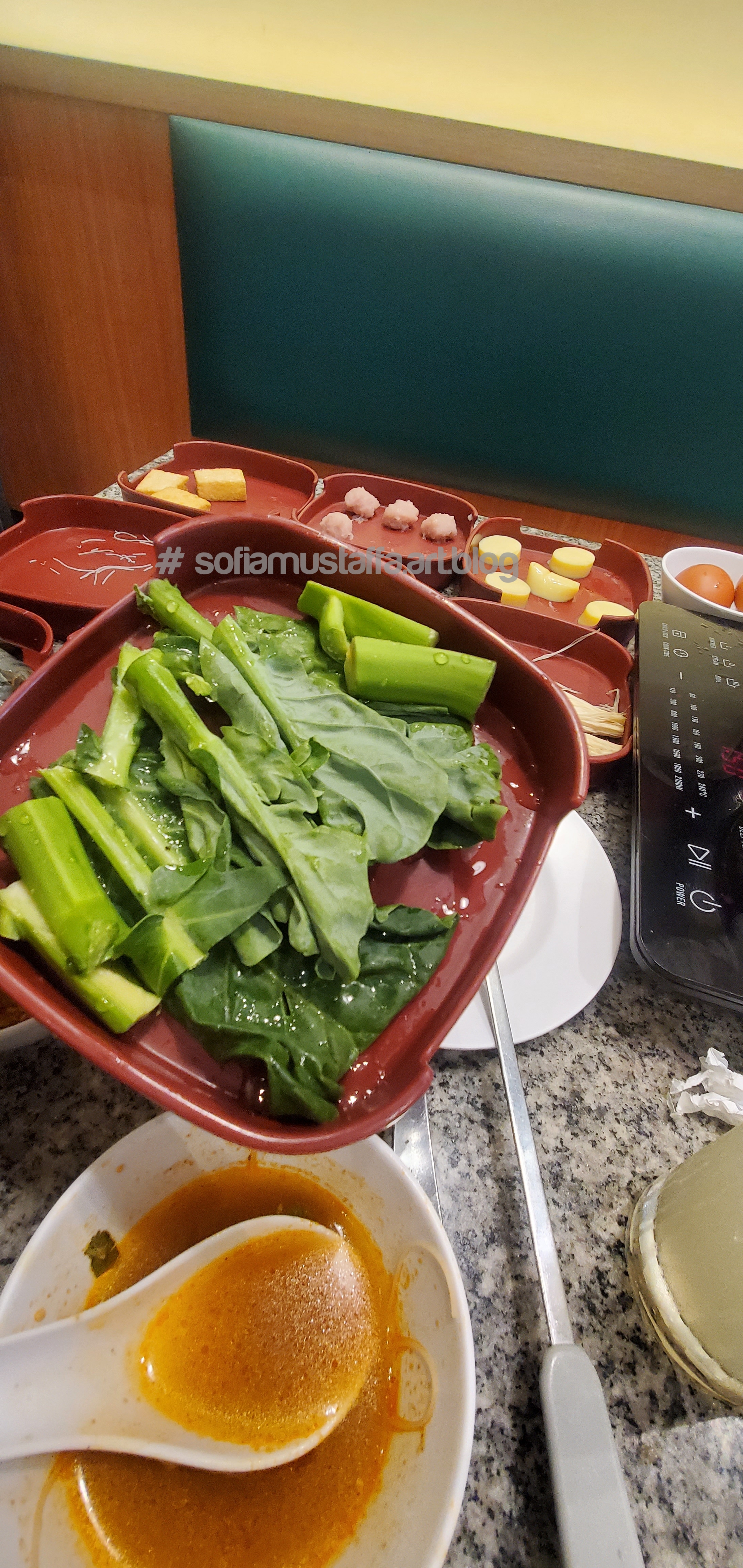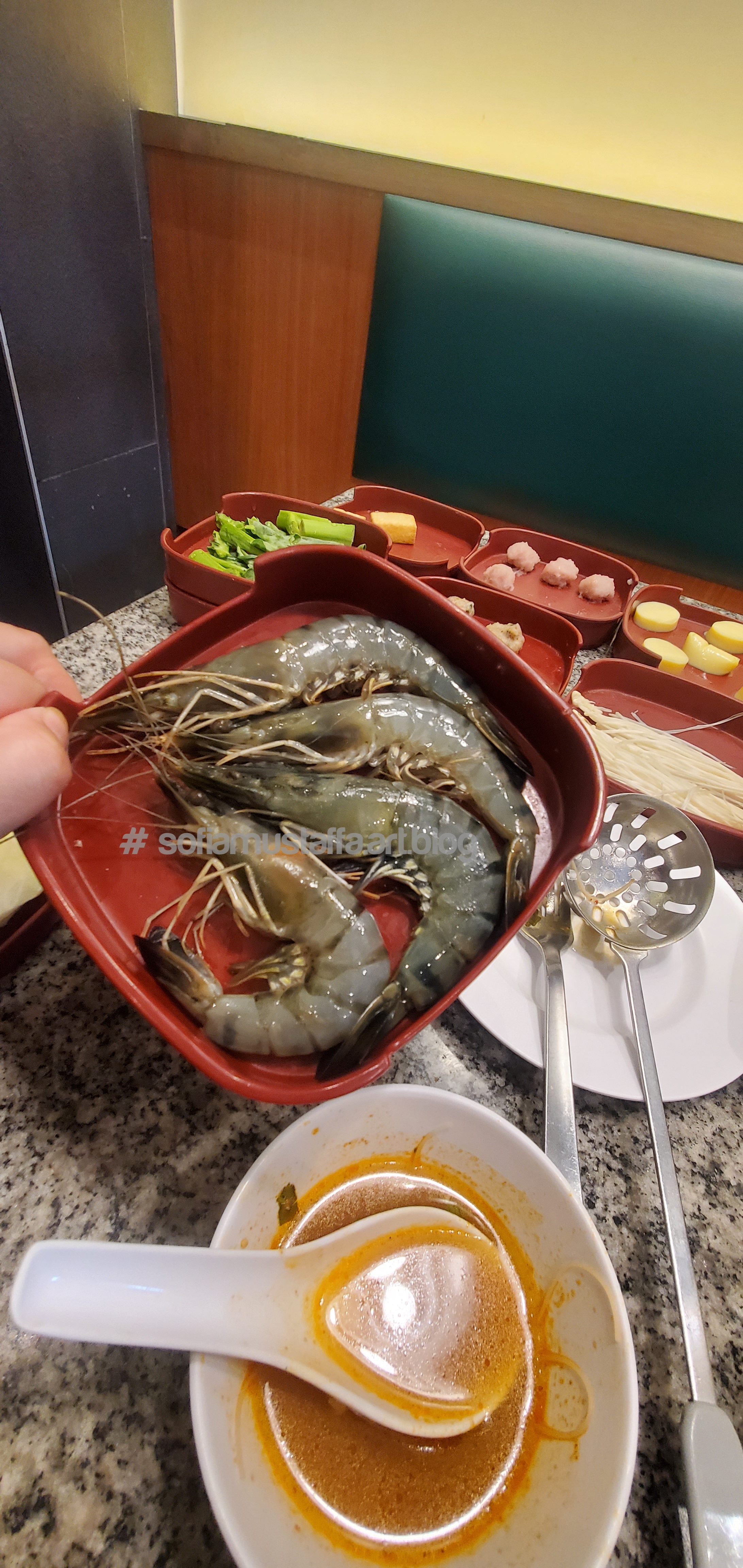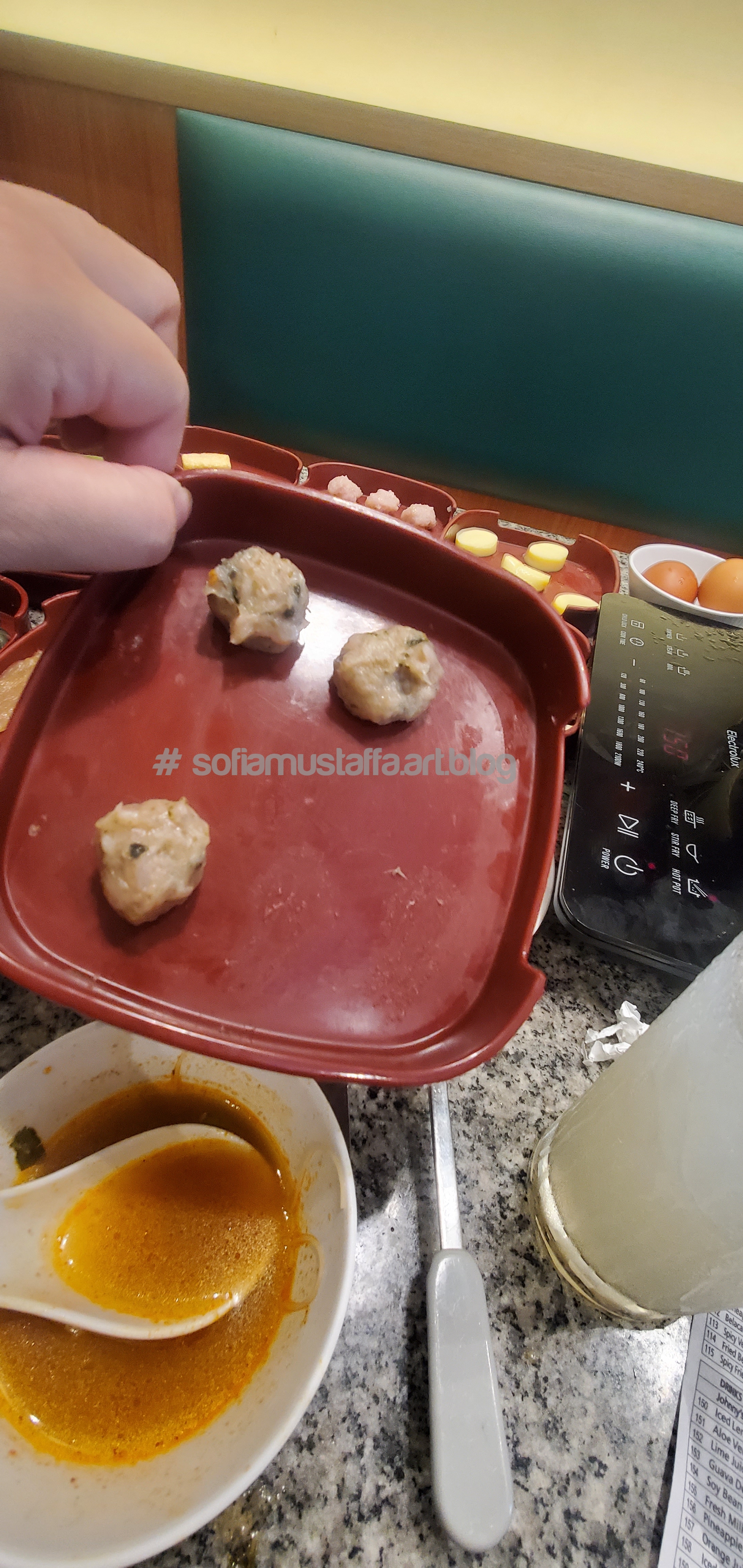 The ‘waitress’ to serve my steamboat πThis is the fav sauce..it taste lil bit like ‘asam pedas’ or ‘asam laksa’ sauce…it mixed well with the Tomyam soup π€€π₯°I think its homemade fish ball, its different taste than the normal round fish ball. It taste ‘rich’ in fishesπ€€My fav too…Seafood Tofu πJapanese Tofu..The golden mushroom..where is the golden? πFresh eggs…i love the egg pouches..π€€Hong Kong Kailan…my fav too..it taste sweet..not like a normal vegie πThe homemade seaweed ball..this taste soo nyummy π€€π₯°πPrawn…quite big..but not one of my fav. I ate it the very last…π₯΄Normal chicken fillet..nothing special bout this..lolThe Chinese cabbage, I don’t really like the taste. It tastes bitter π