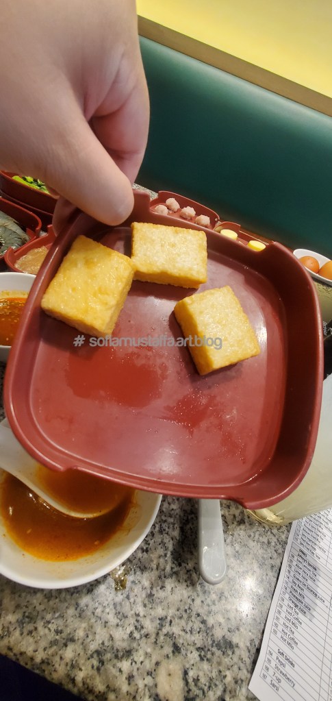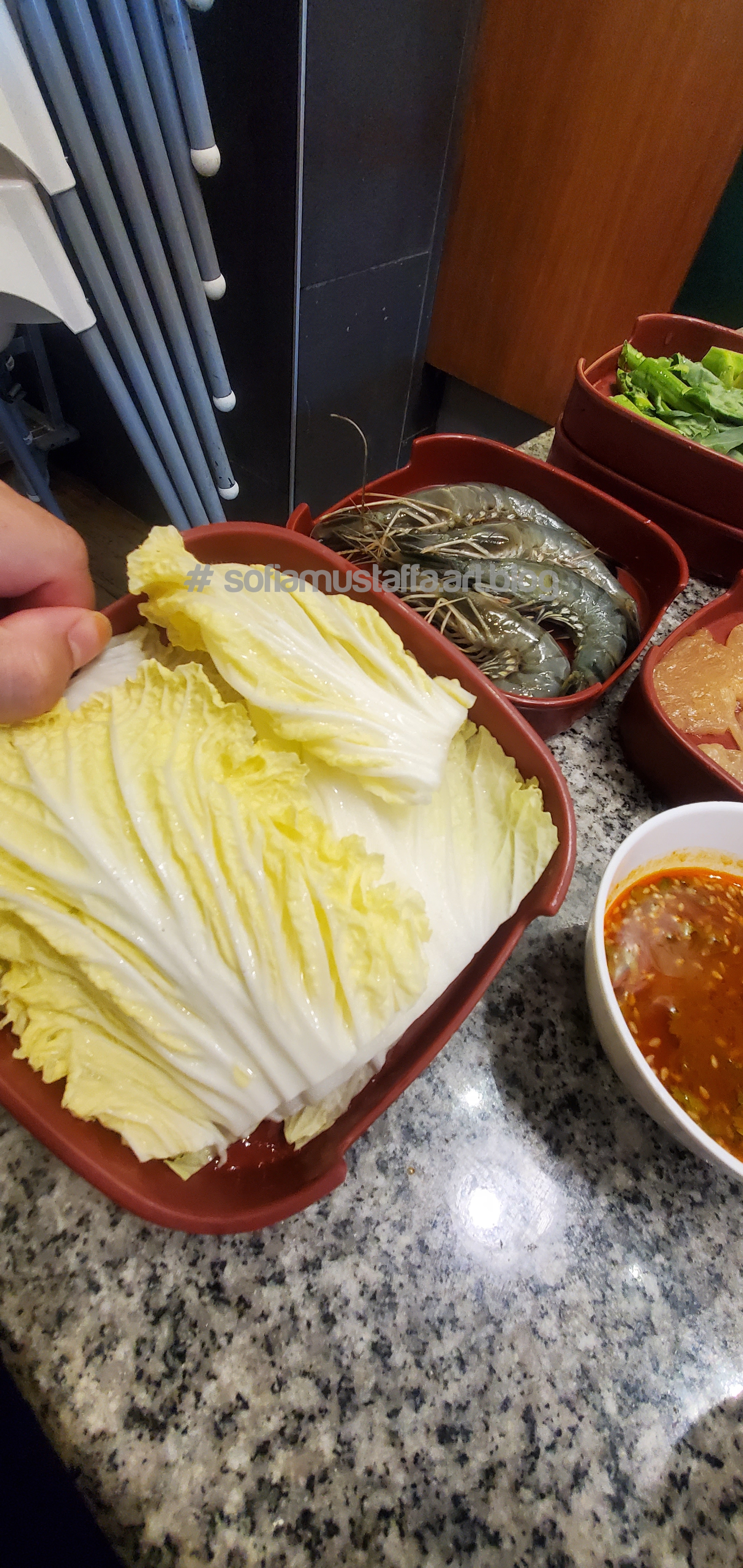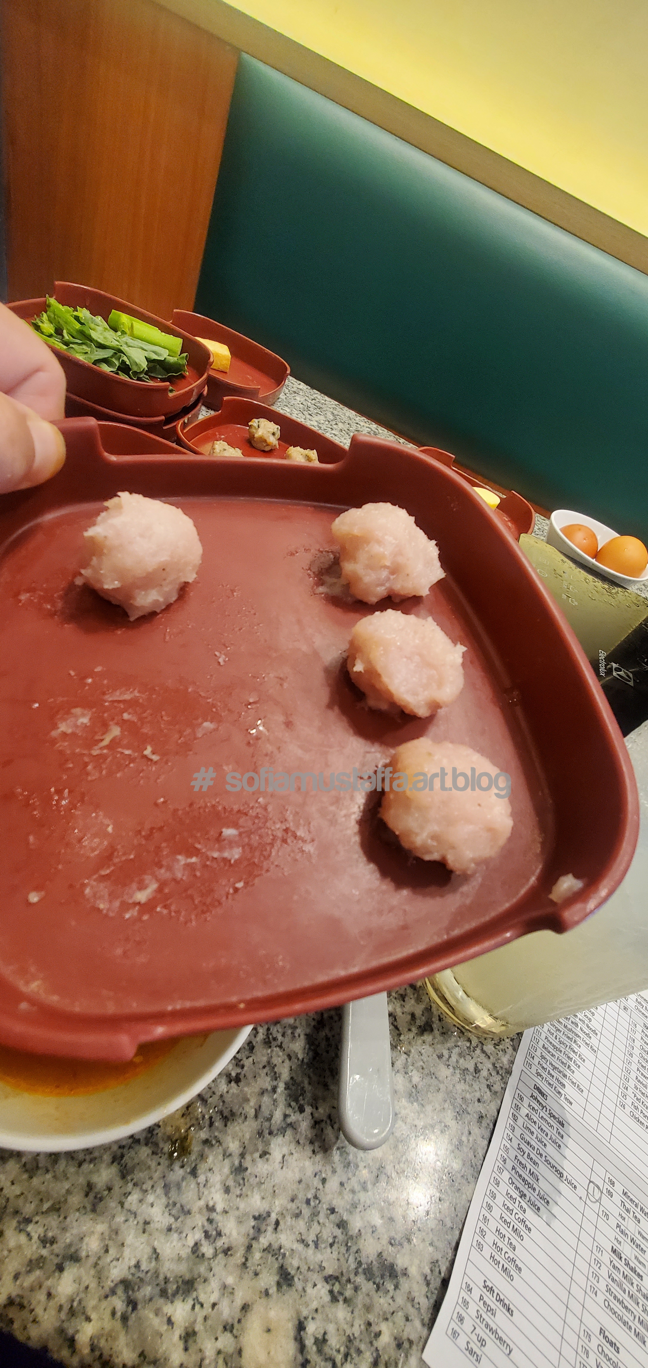 The ‘waitress’ to serve my steamboat πThis is the fav sauce..it taste lil bit like ‘asam pedas’ or ‘asam laksa’ sauce…it mixed well with the Tomyam soup π€€π₯°I think its homemade fish ball, its different taste than the normal round fish ball. It taste ‘rich’ in fishesπ€€My fav too…Seafood Tofu πJapanese Tofu..The golden mushroom..where is the golden? πFresh eggs…i love the egg pouches..π€€Hong Kong Kailan…my fav too..it taste sweet..not like a normal vegie πThe homemade seaweed ball..this taste soo nyummy π€€π₯°πPrawn…quite big..but not one of my fav. I ate it the very last…π₯΄Normal chicken fillet..nothing special bout this..lolThe Chinese cabbage, I don’t really like the taste. It tastes bitter π