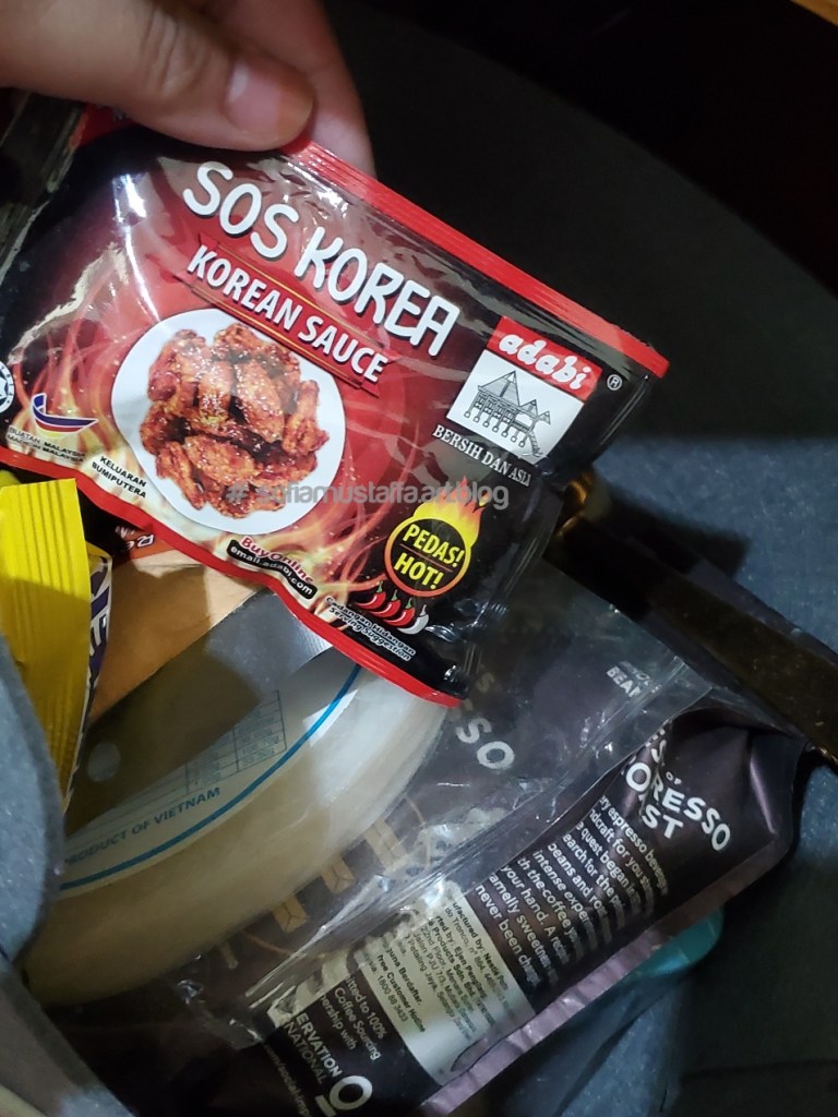 Tadaaa…one of the rack is for my dry food stuffFried Chicken flourKorean spicy sauce for fried chickenVietnam spring roll paperMy fav starbuck espresoand…Raw Jelly..