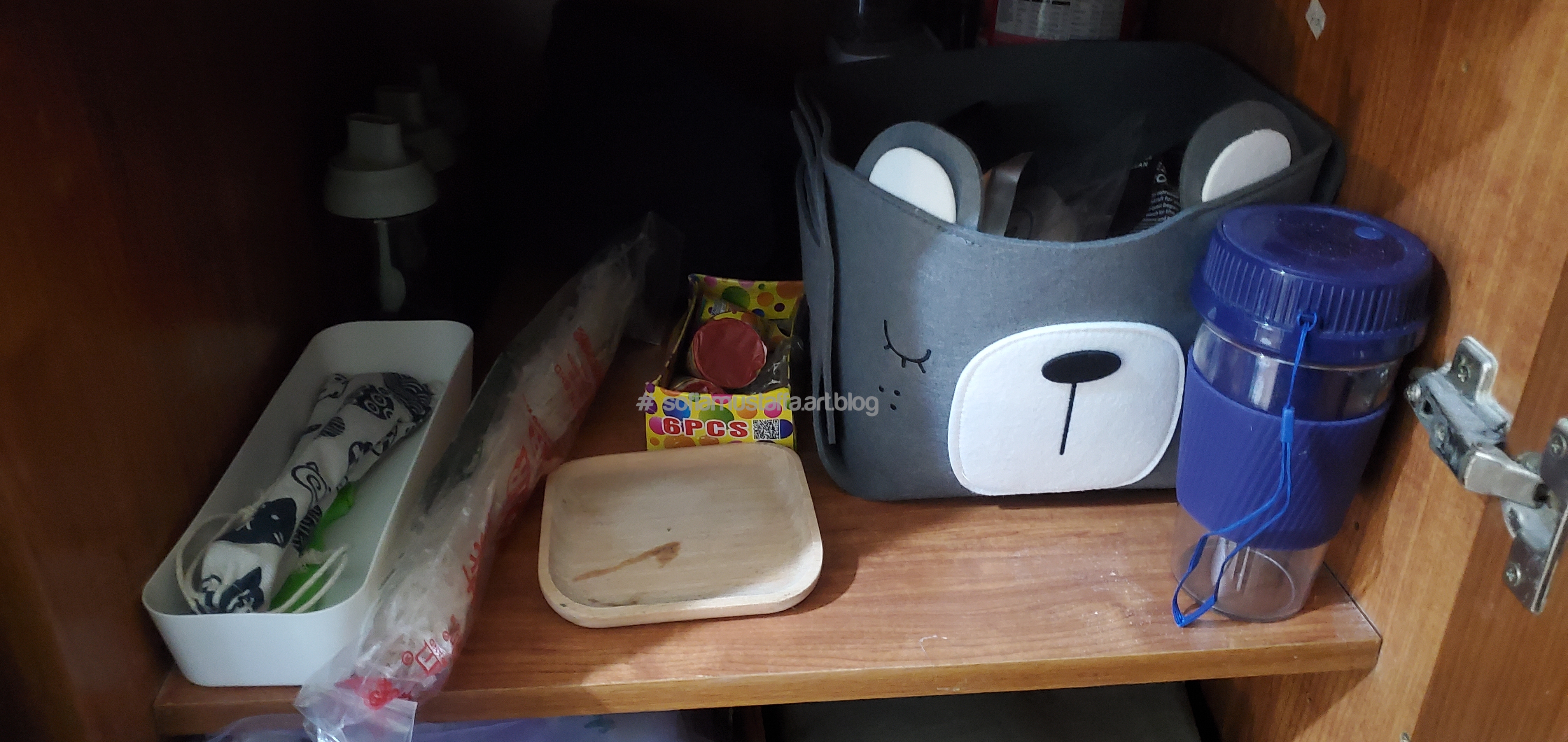 This is one of the cupboard or some call wardrobe. But, I have 2 wardrobe, well..I’m living in a family whom all members are maximalist, except my dad and me. So yeah, I have 1 big wardrobe, and 1 small wardrobe. So the big one, as you can find in my other post, is solely only for my clothes, handbag, duvet cover and bedsheets, towel and scarf. And another 1 small cupboard, I keep the sort of unwanted stuff that need to sort, like cables, candles, essential oils that Im barely use, projector, gun glue and sort of stuff. So, I keep one rack for my dry food stuff, like coffee, sauces in packet, jelly packet…etc..